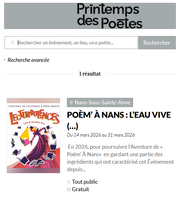 Un évènement inscrit dans l’Agenda du Printemps des Poètes 2026 :